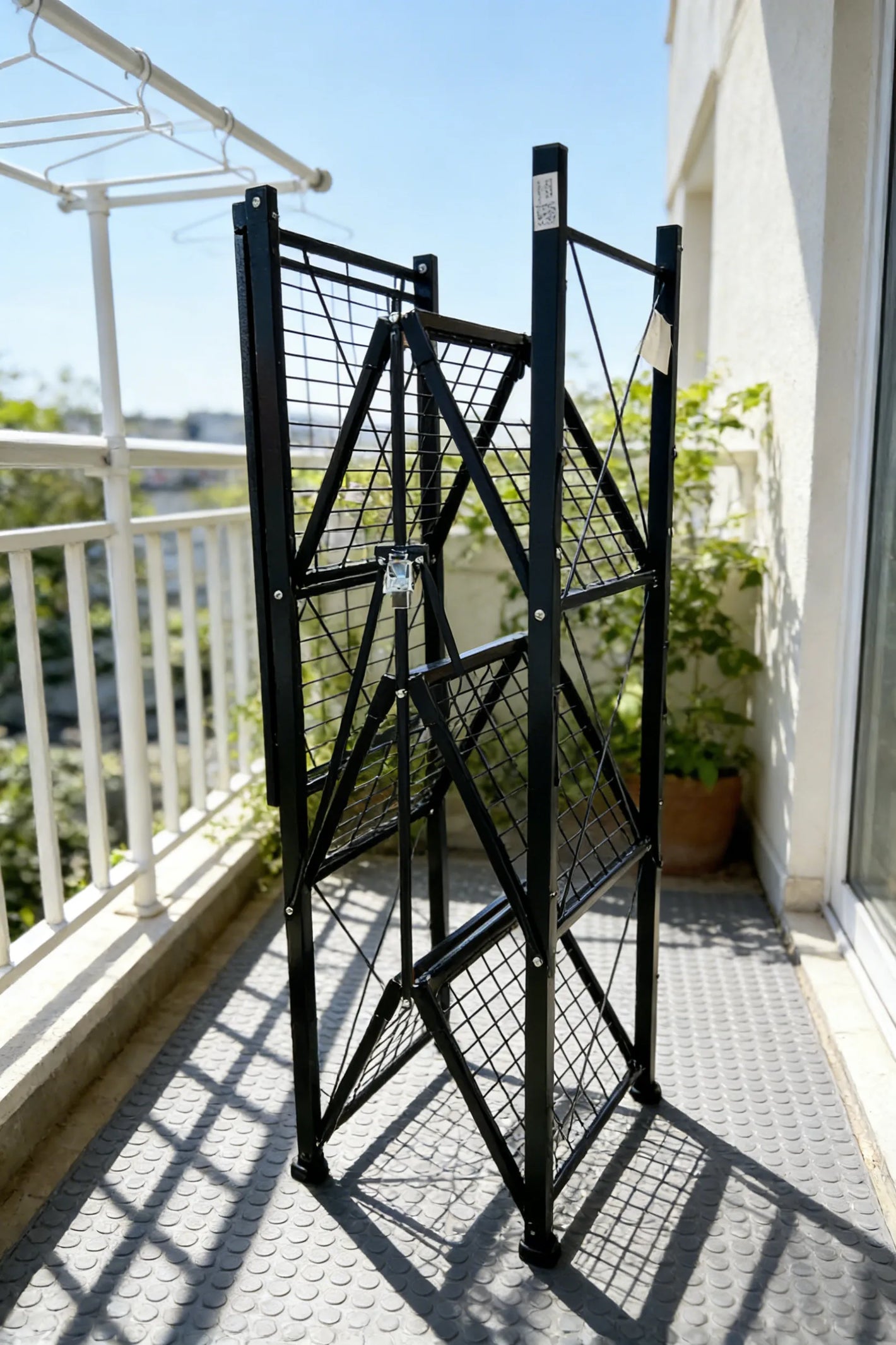 360° mobility meets industrial strength. Collapses to just 3 inches wide for easy storage behind doors or in closets.